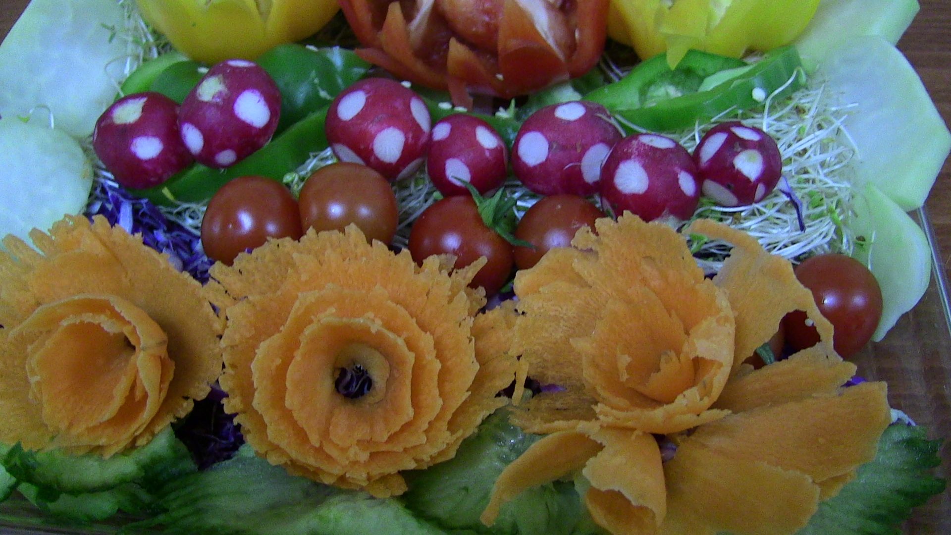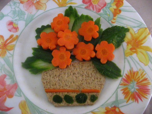 אם יש לכם זמן, כוח ורצון להתעניין באומנות בחופשת קורונה-פסח, אז אמשיך לשתף. בינתיים-מהישן, הטרי עדיין בכרטיסים המסתובבים בבית. נראה אם אגיע לסדר אותם לפסח... הנה משהו ישן אבל חמוד: קרקר, גזר ומלפפון. הגזר חתוך בלי קורצן, עם העיגול שבצד המקלף עשיתי ''שבילים'' לאורך כל הגזר ואז פרסתי אותו. יצאו פרחים, פה ושם מפושלים, אבל הכל נאכל בסופו של דבר