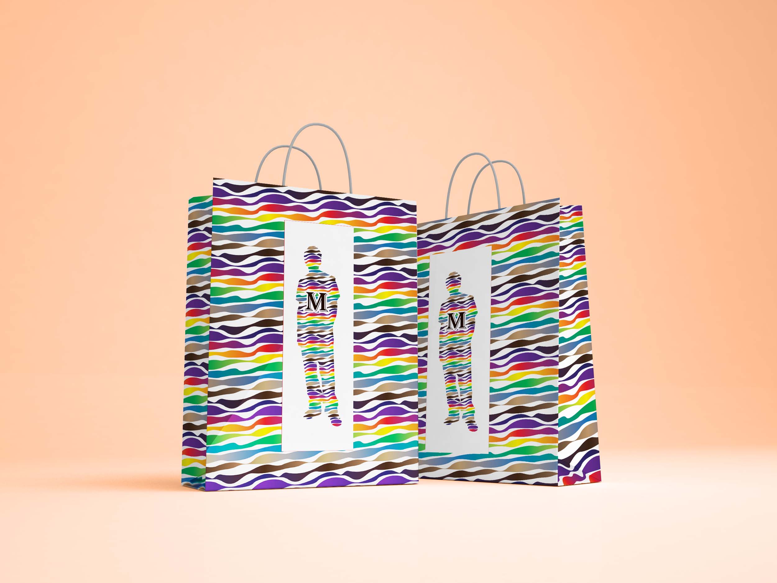 כעת נניח שהחברה ההיא משתמשת בשפת המותג שלה לשקיות הנייר שלה...
