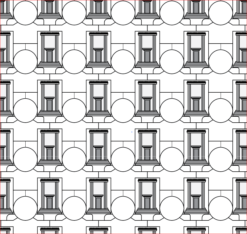 יש לציין שהדגש נתון כאן שלא ייווצר הרגשה של מרובעים מחוברים אחד לשני, אלא לייצר סוג של פלטה אחת גדולה כי השמים שמעל לשער זה משמשים להרים לשער שמעל בהצלבה צולחת וללא גבולות.