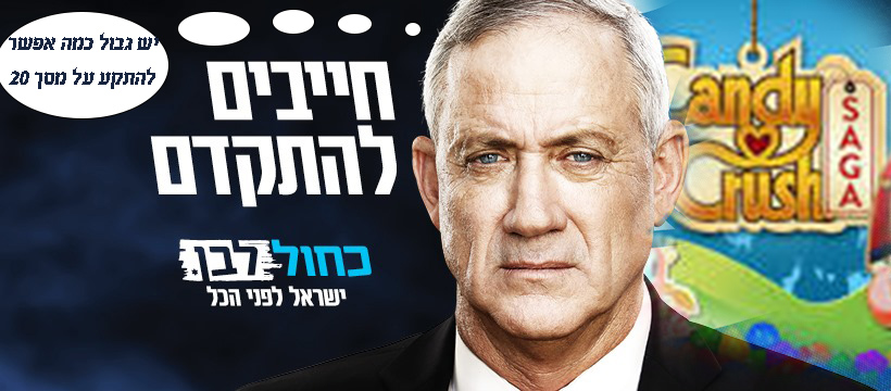 3. להיצמד כמה שיותר לקו העיצוב המקורי של המפלגה ועדיף גם מבחינת מסרים. (גנץ- חייבים להתקדם, התקדמנו נתקדם מתקדמים :rolleyes: וכו')