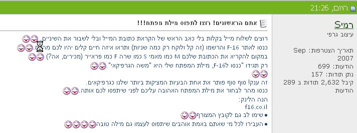 רק תגידו "כנסו לF-16, מילת המפתח שלי היא "משה הגרפיקאי".<O:p</O:p