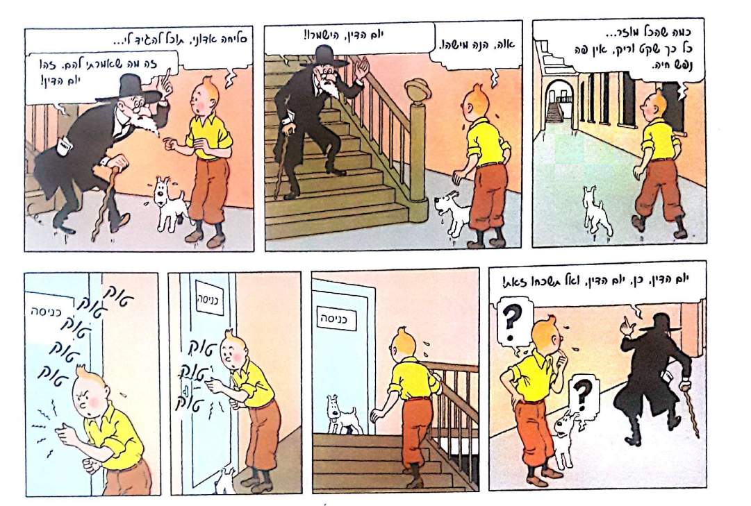 הקומיקס הוא העתק מדויק מספרי טינטין על כל המשתמע. כלומר, הצייר של ספרי טינטין היה אנטישמי לא קטן. דבר שבא לידי ביטוי פה ושם. וגם כאן.הציור עצמו נראה מצחיק ומעניין - אכן קצת צרם ההשוואה לקריאת האלול, אפי' שגם אני הייתי בחור ישיבה (לפני כ10 שנים..) אך מכאן ועד אנטישמיות וכו' הדרך ארוכה..