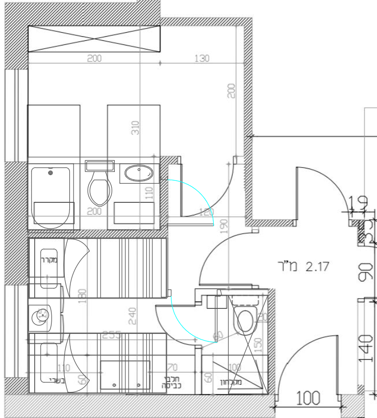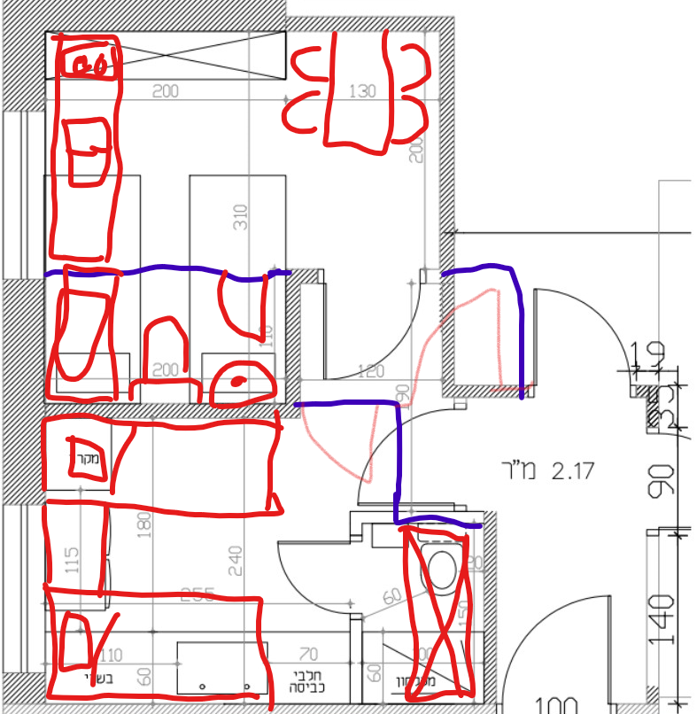 כי המטבח יוצא קטן יותר החדר קטן יותר ואין אפילו את הקצת מרחב שיש באופציות קודמות כי צריך למטבח לשירותים ולחדר להכנס דרך דלתות