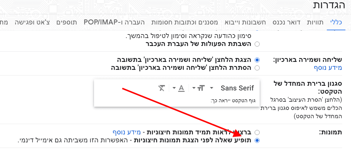 על כן מומלץ בהגדרות לבטל את הצגת התמונות (ורק בכל שולח באופן ידני תוצע האפשרות להציג)