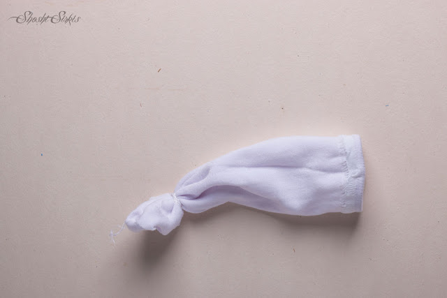 הופכים את הגרב, וקושרים את הקצה שלה.