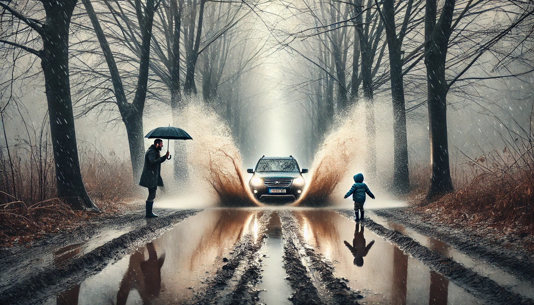 רכב אפור, חדש ויפהפה, דהר לכיווננו במהירות. כנראה גם הוא ממהר בשעות הבוקר הקצרות.