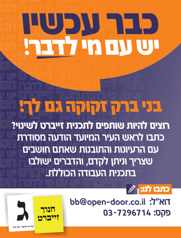 נחשף הסלוגן הנבחר לקמפיין של חנוך זייברט לראשות העיר בני ברק: "זייברט, יש עם מי לדבר!"