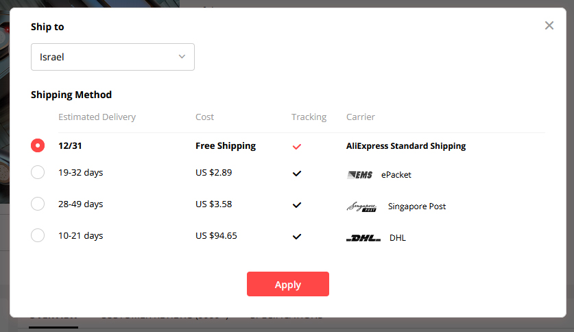 - Seller's/Aliexpress Shipping Method (אליאקספרס)