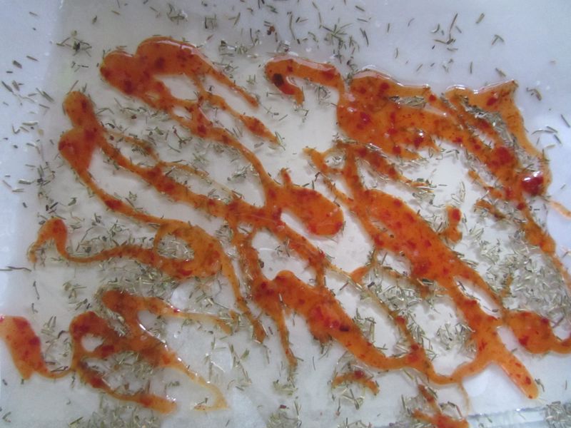 מזלפים רוטב צ'ילי מתוק.
