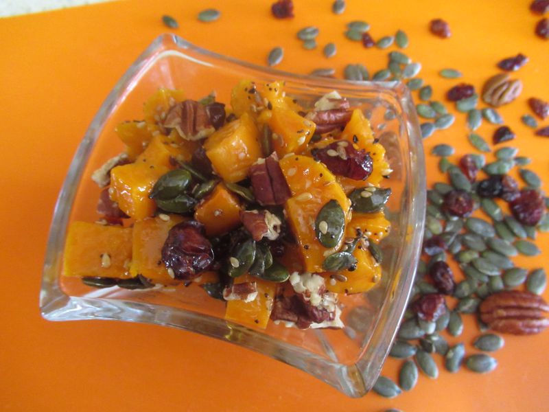 בהגשה מוסיפים לכרובים את הנבטים, גרעיני החמניה והבטטות.