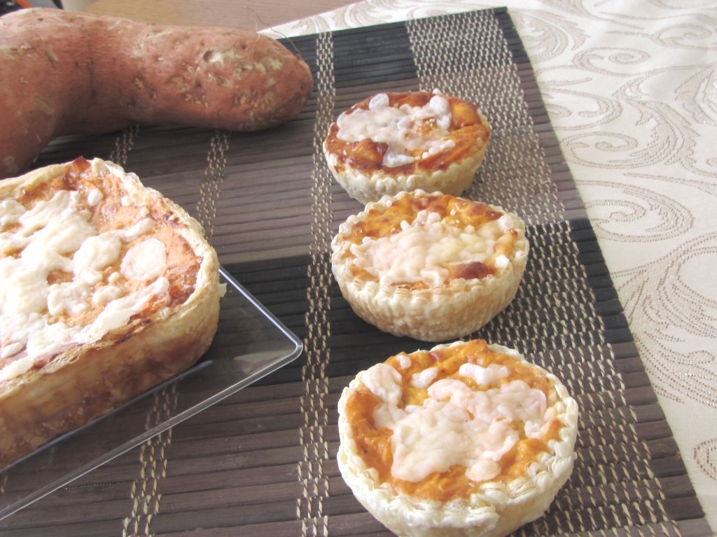 במקום להכין מנות אישיות, אפשר פאי גדול. מרפדים 2 תבניות עגולות בקוטר 26 ס"מ בבצק פילאס. ממלאים במלית ואפי ב 180 כשעה ורבע, עד להשחמה נאה. מפזרים גבינה צהובה מגוררת ואפי עד להמסתה.