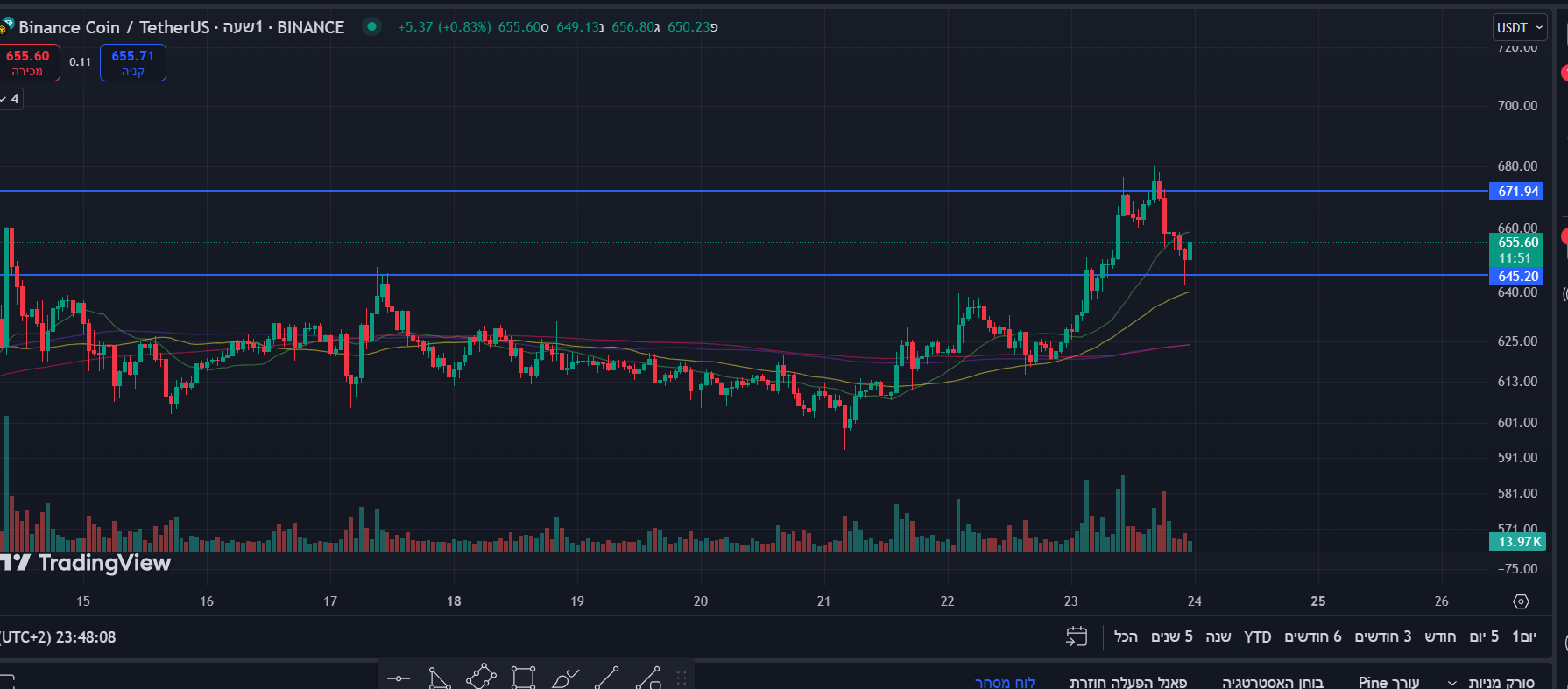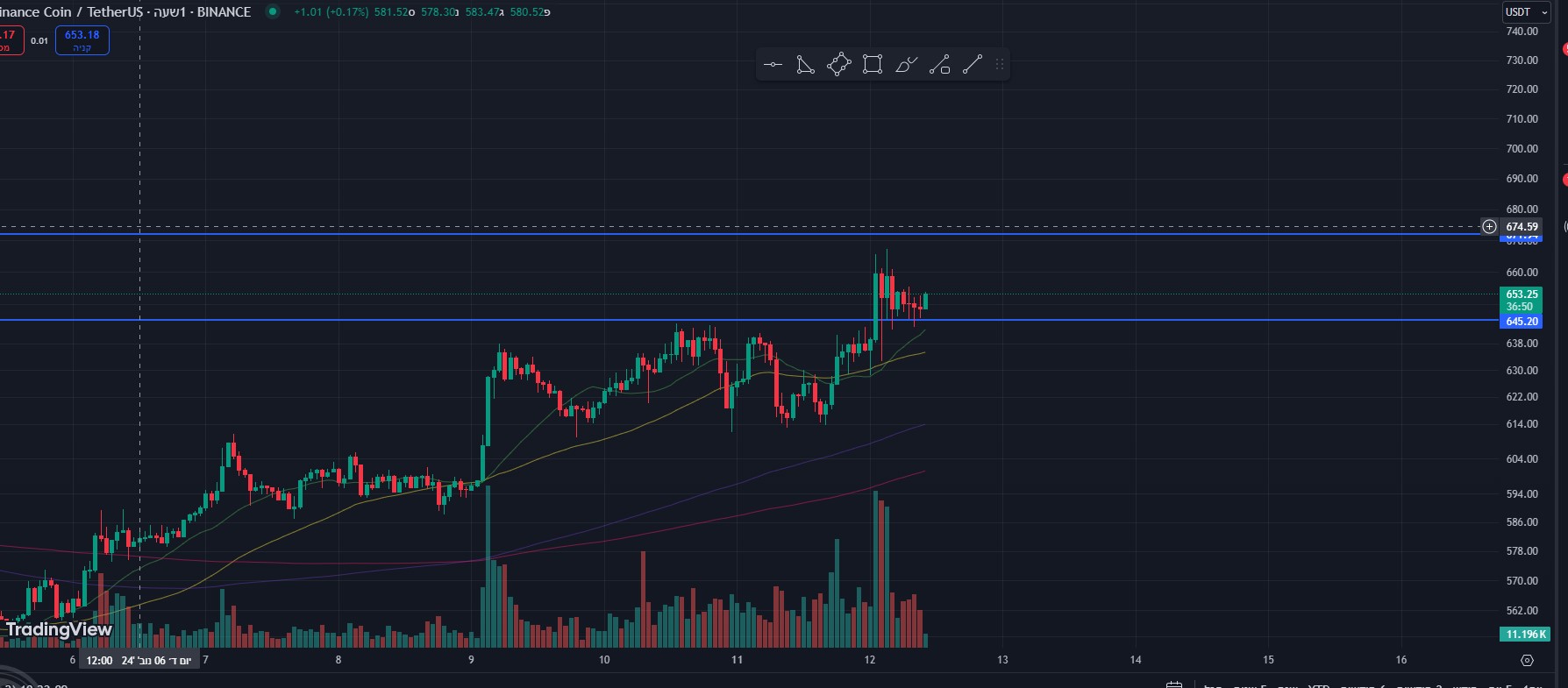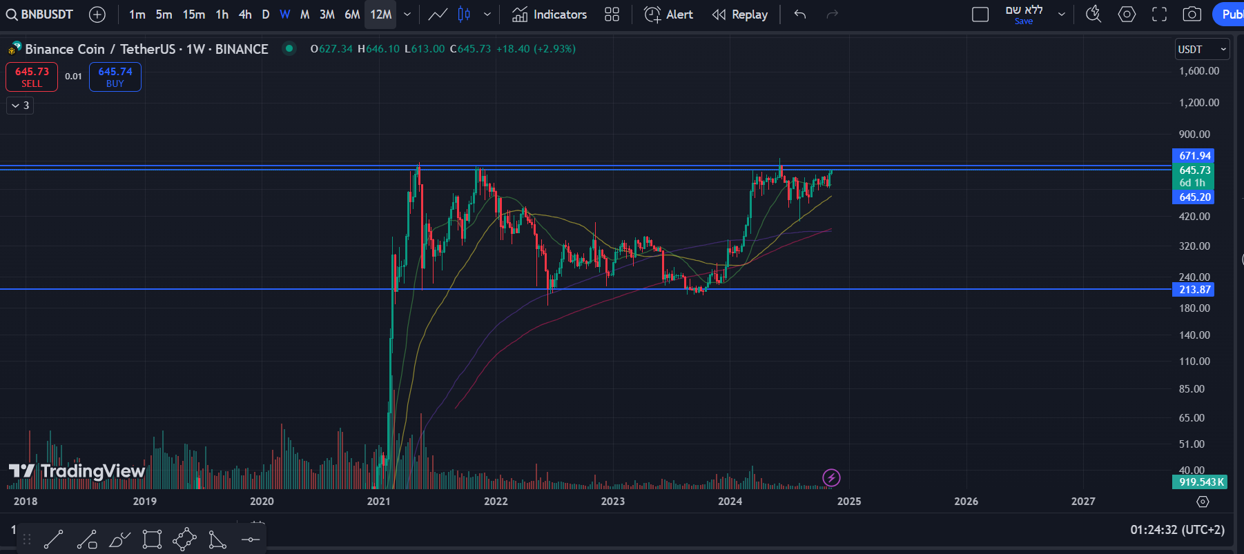 הגרף של BNB שבועי מזכיר את הגרף של ביטקוין לפני הפריצה
