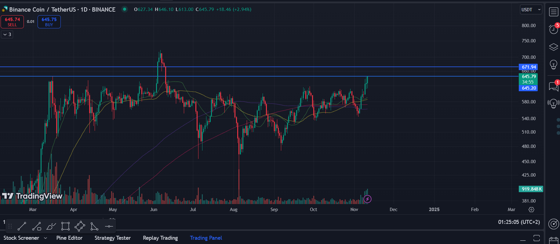 שקניה שלו היום בבורסה אחת Binance היה בדקה אחת מסחר פעם אחת 100,000,000 ופעם אחרת היה 200,000,000 מה שזה אומר שהשוק משתגע