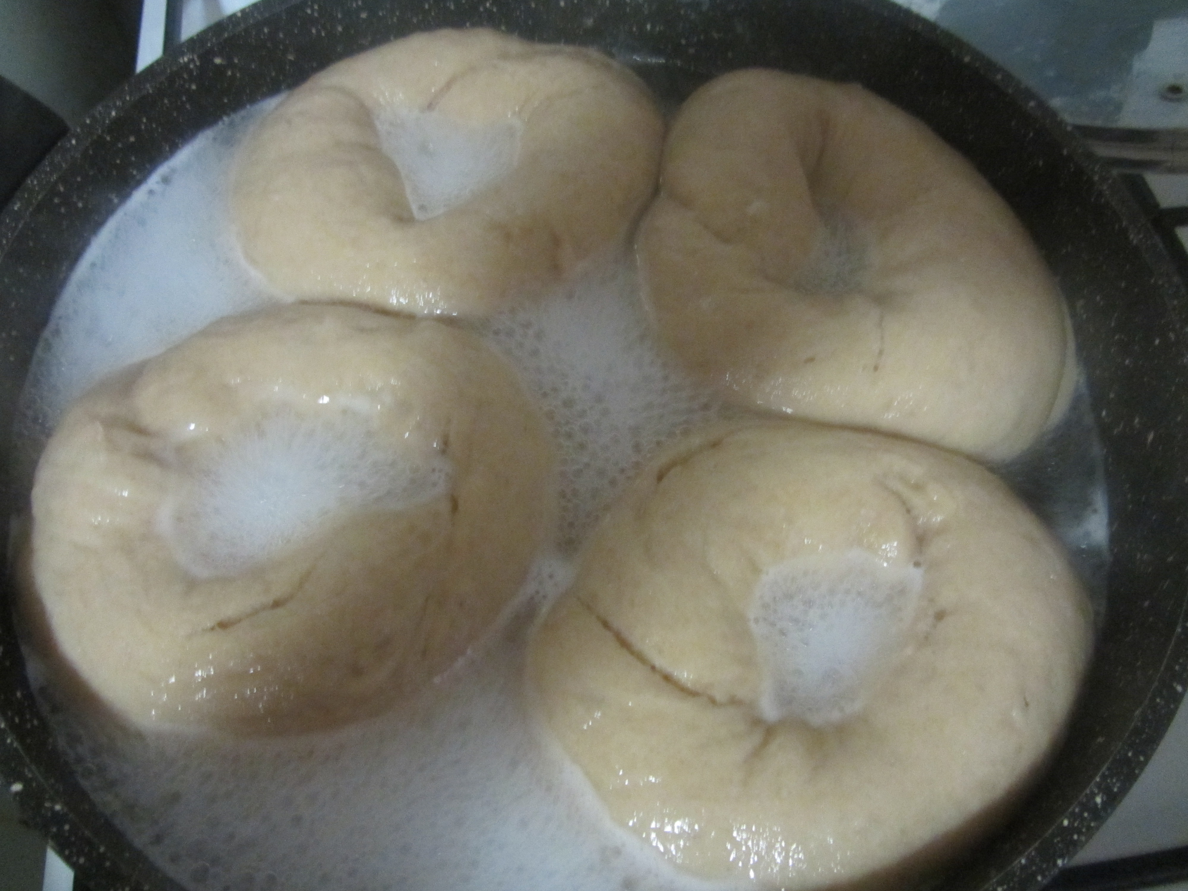משאירים במים עד שהמים ממש מבעבעים והבייגלים כגדלים פי אחד וחצי לפחות