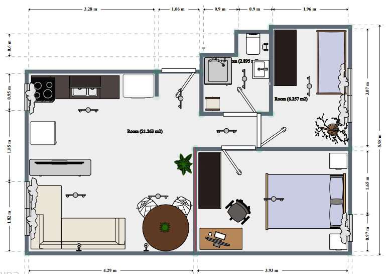 הריהוט הוא להמחשה ולא דווקא במידות המתוכננות, פשוט באתר שהכנתי את התוכנית אפשר לשחק עם גודל הריהוט בעיקר למנויים בתשלום