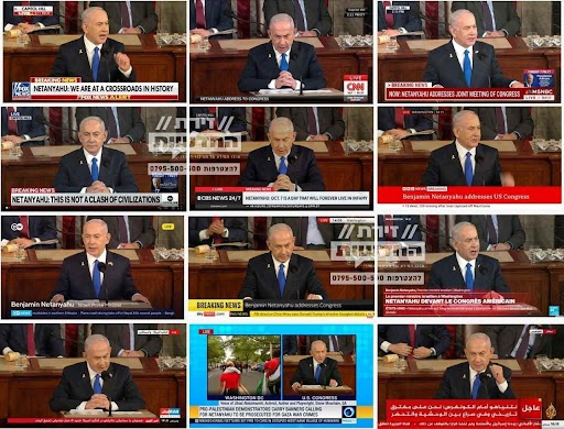 שידור חי מנאום נתניהו בקונגרס בכל ערוצי הטלוויזיה בעולם -