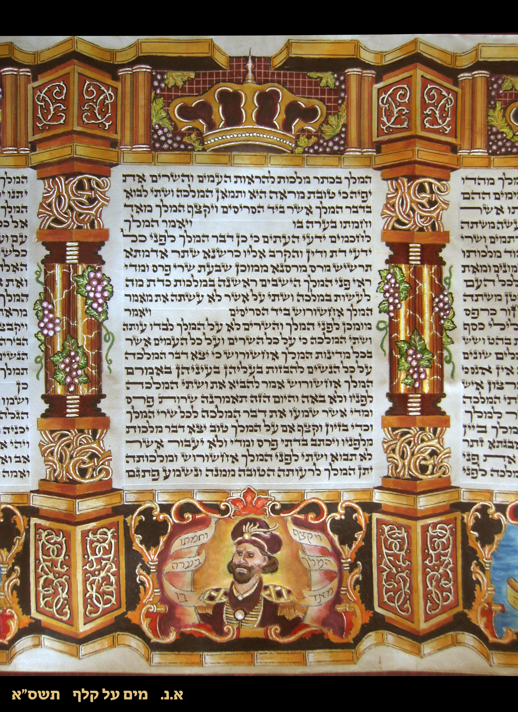 3) צבעי מים על קלף. מגילת אסתר. סגולה לעיוות הקלף ולכיעורו...