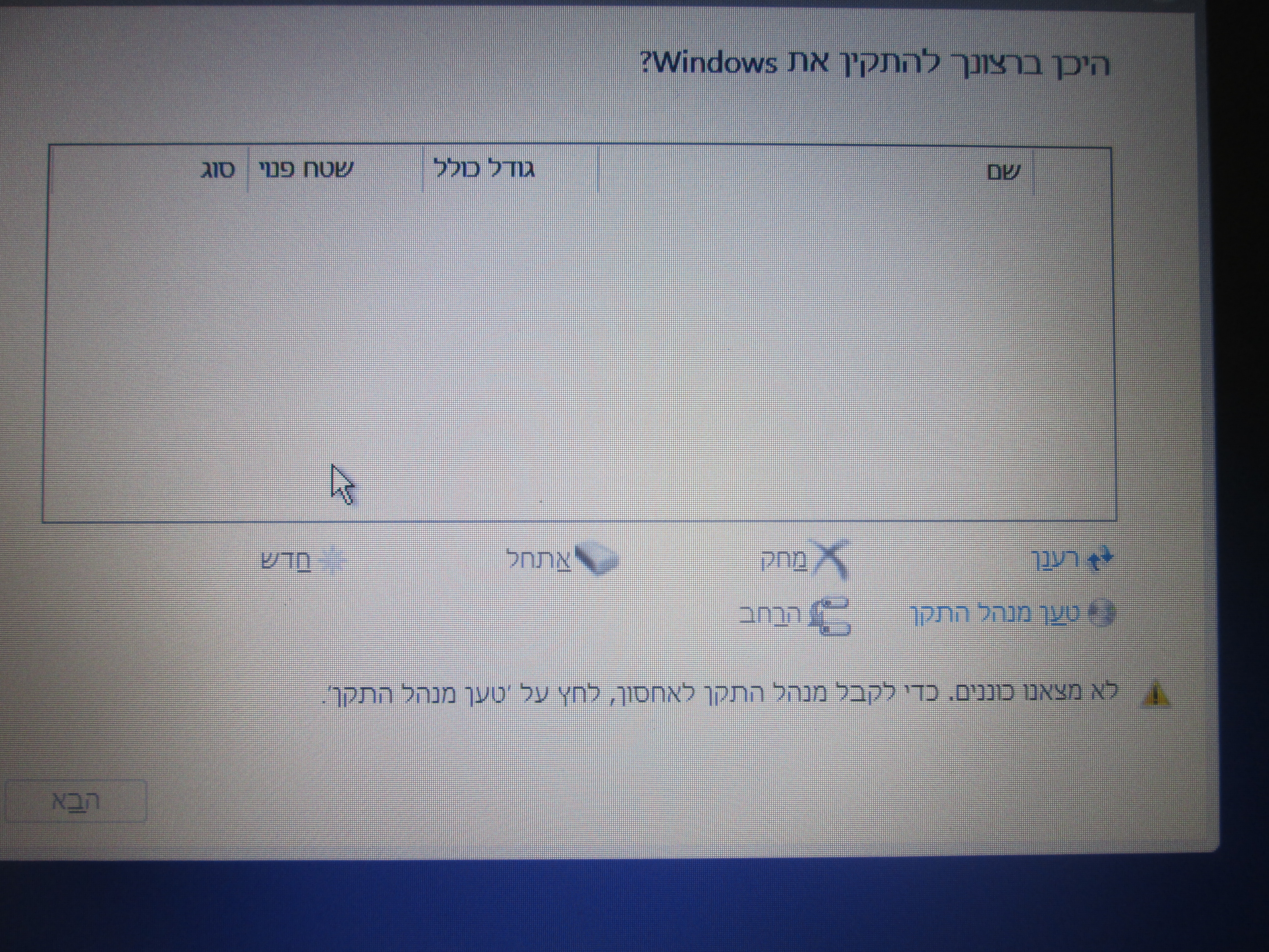 בחלון ההתקנה לא מופיע בכלל כונן או שמופיע כונן שלא ניתן להתקין עליו?דיברתי עכשיו עם בעל המחשב והוא טוען שאמור להיות למחשב זכרון של 250 גיגה SSD