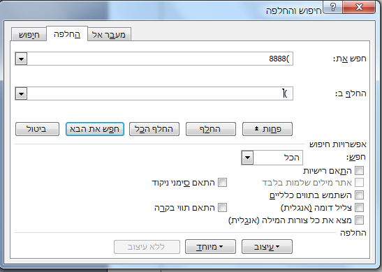 אשמח לדעת כיצד ניתן לחפש כל מקום שיש אות כלשהי ומיד סוגר"(" ויחליף כך שיהיה רווח בין האות לבין הסוגר.