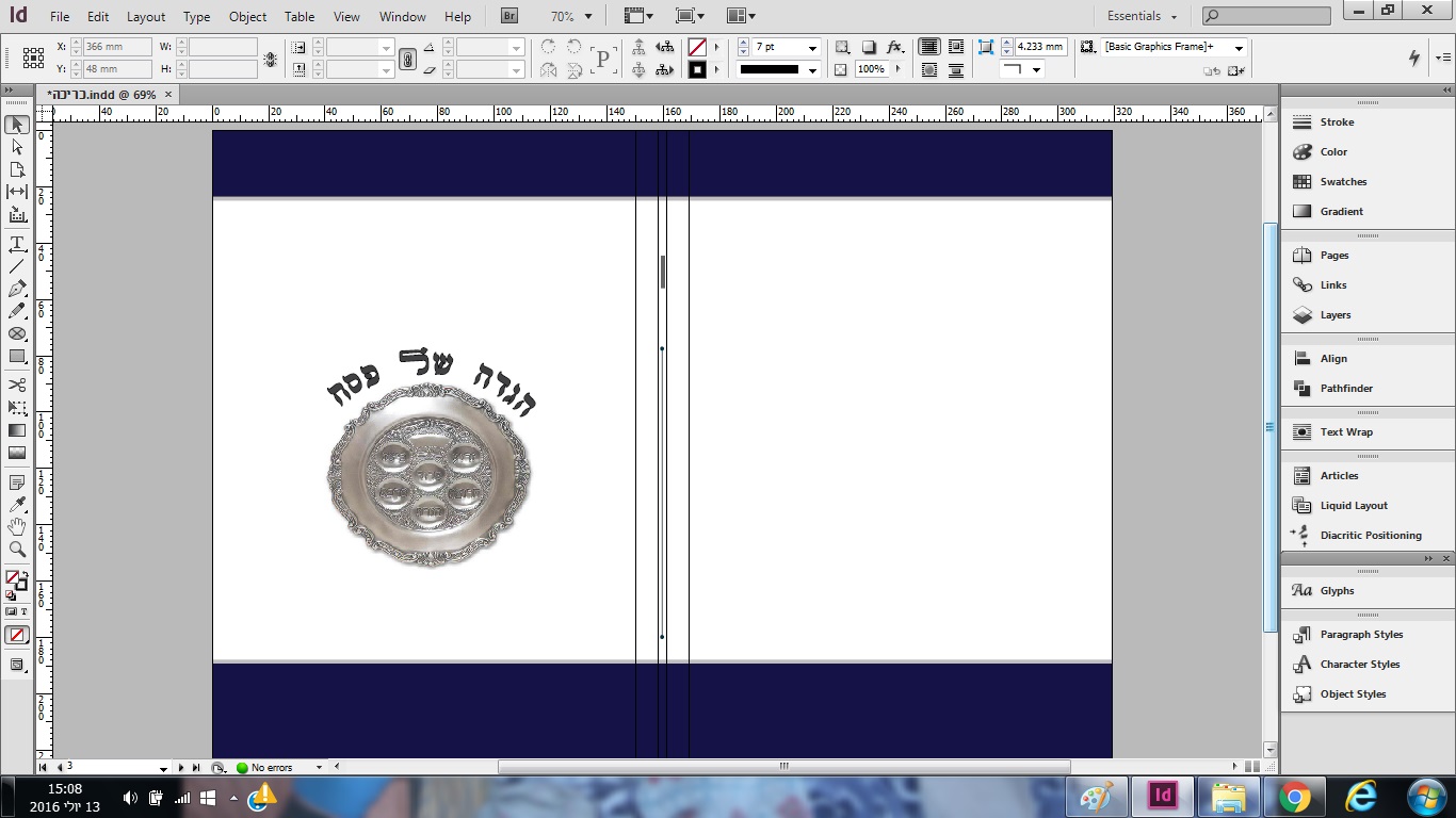 לרגל סיום קורס באינדיזיין בועז שרון הי"ו ביקש שנביא לראשון את ספר מודפס, ועשיתי כריכה קשה כפי שלמד אותנו.