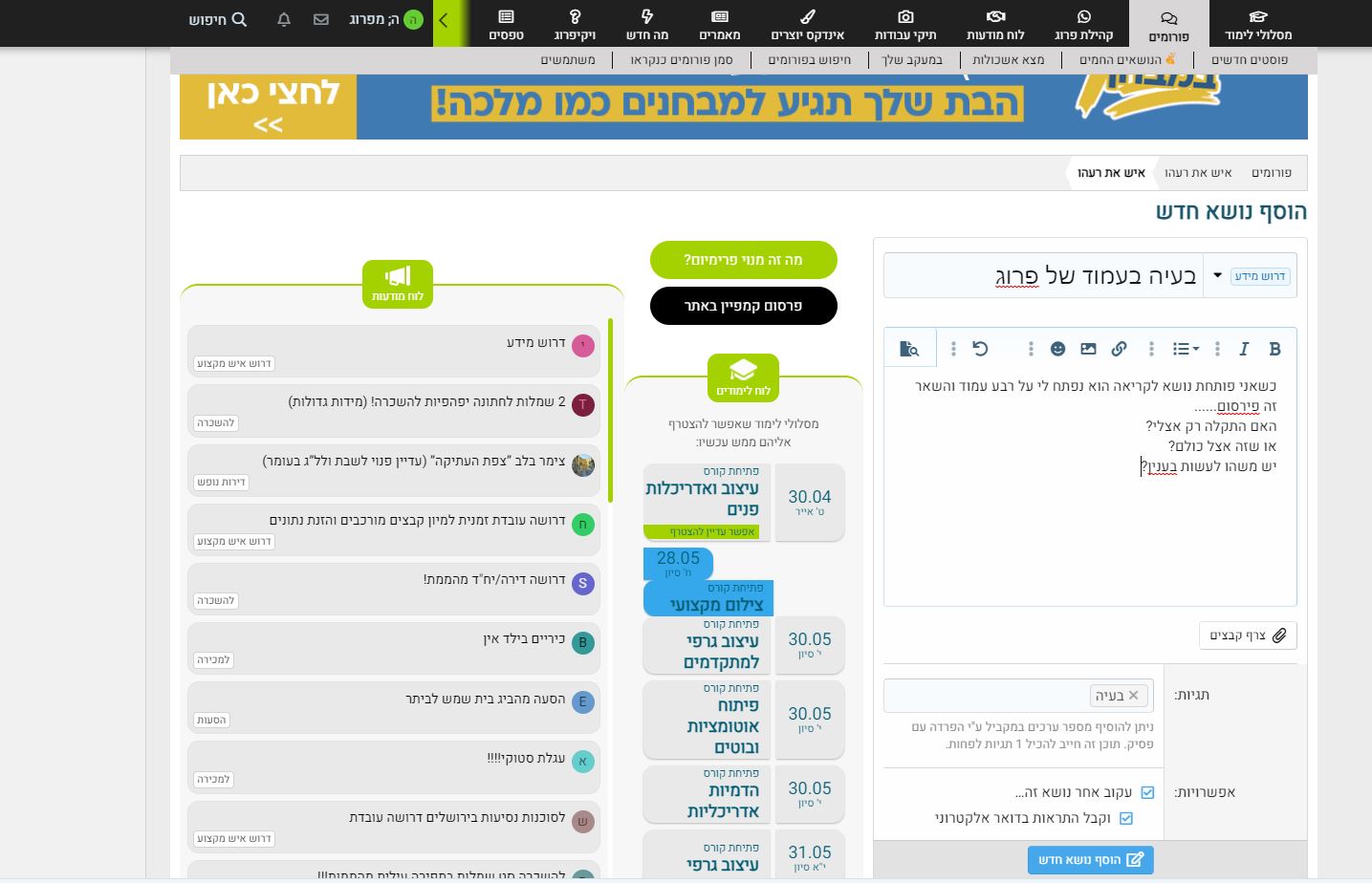 דרוש מידע בעיה בעמוד של פרוג