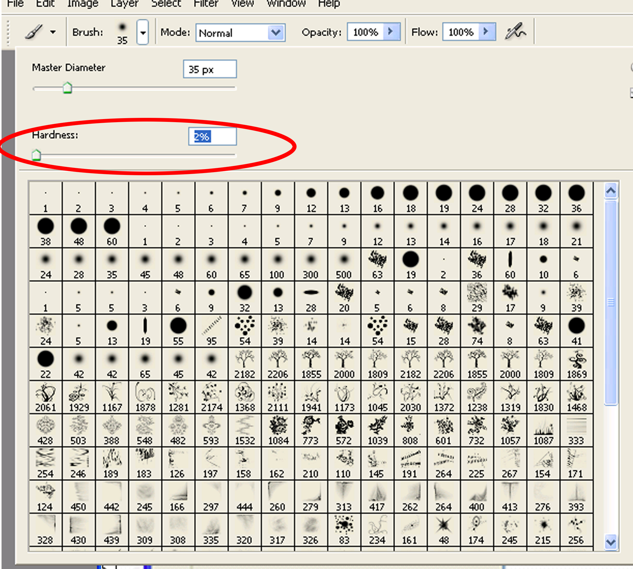 ולא רואה גם שיש לי על המברשת הגדרות כל שהן.