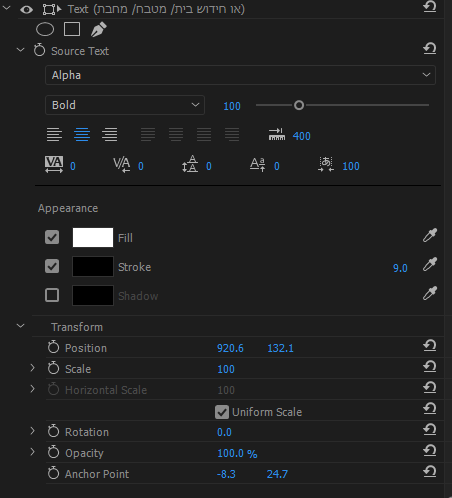 בעניין הTitle בפרימייר CC2017