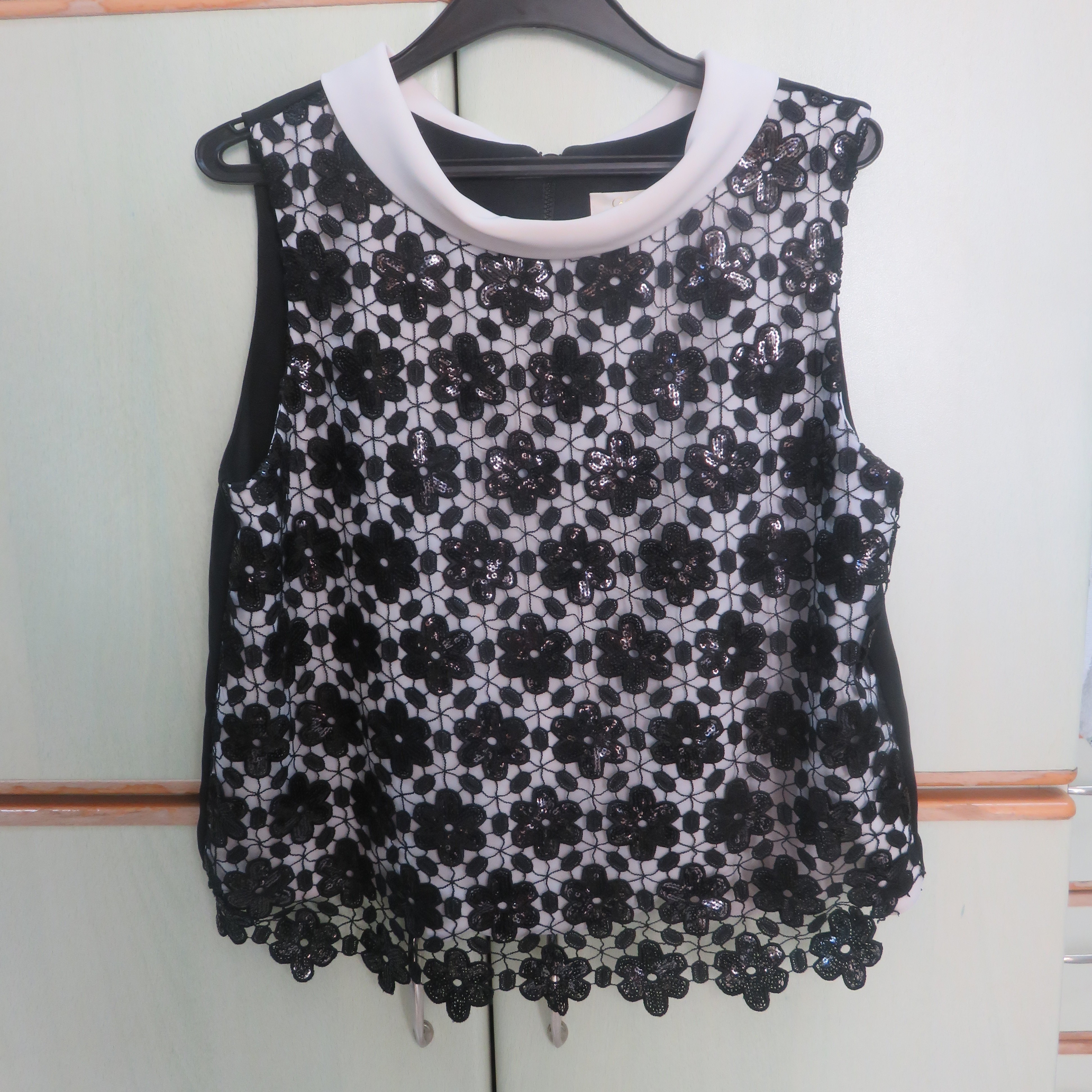 עליוניות זהות: רשת שחורה עם פייאטים וצווארון בז'