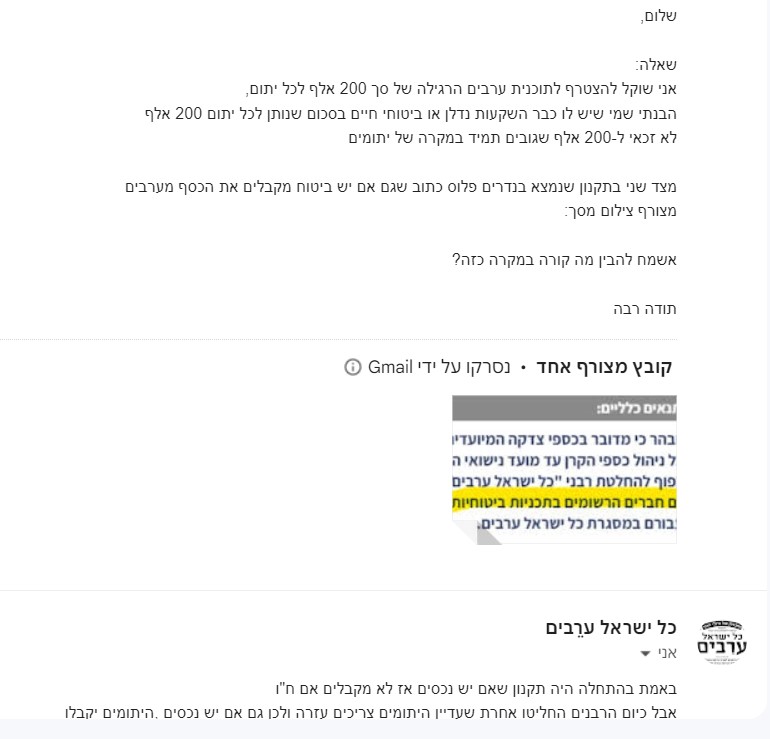 עכשיו קרה משהו עוד יותר מוזר.כידוע, בתכנית "עֲרֵבִים", העקרון הוא ביטוח לצדקה, ולכן אם במקרה אסון ח"ו יש למשפחה מספיק כסף לנישואי הילדים, הם לא מקבלים.