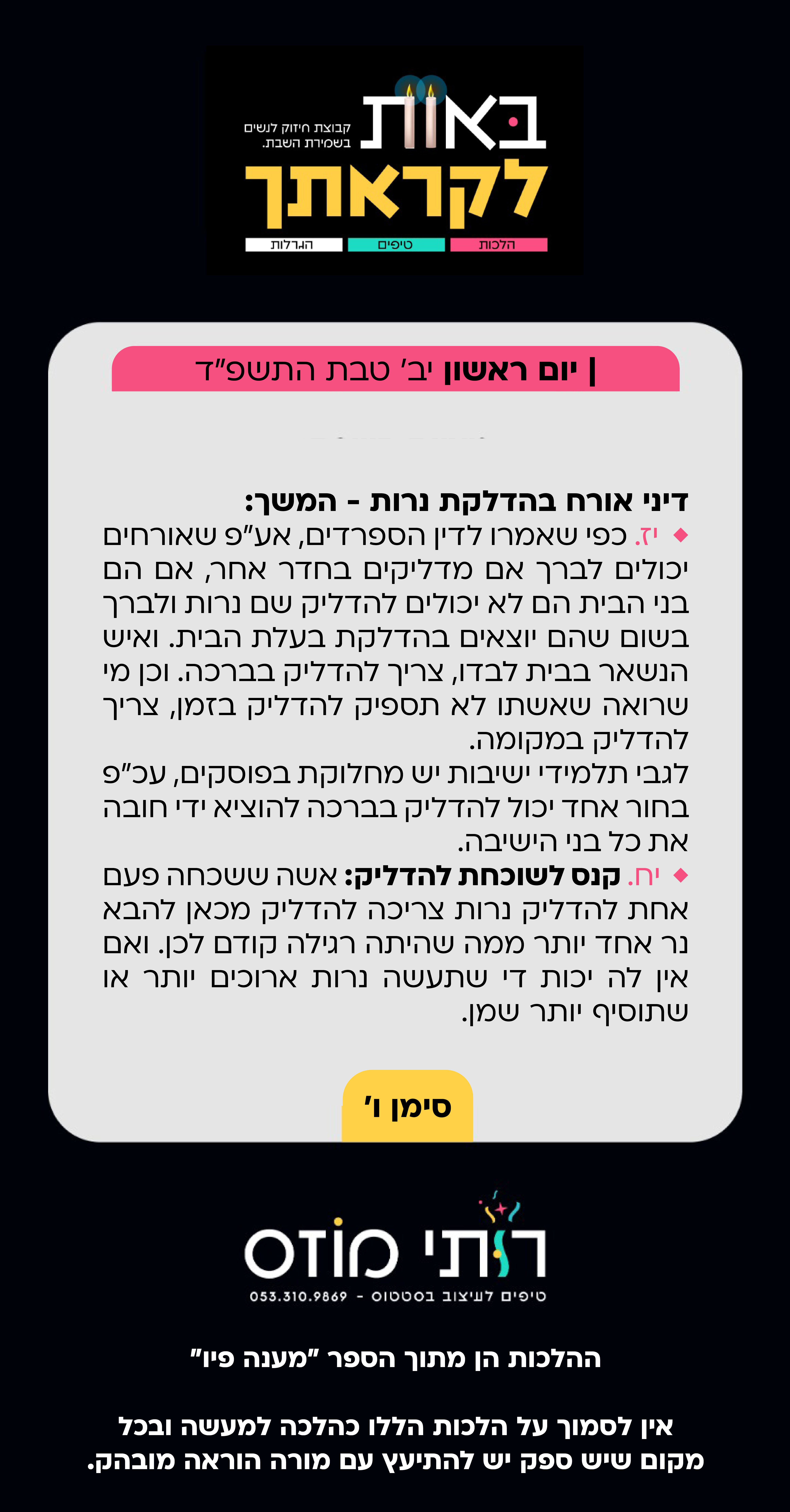 להצטרפות לקבוצת השבת "באות לקראתך": https://chat.whatsapp.com/K9BJhP15cjS5Xii9Lpzgty