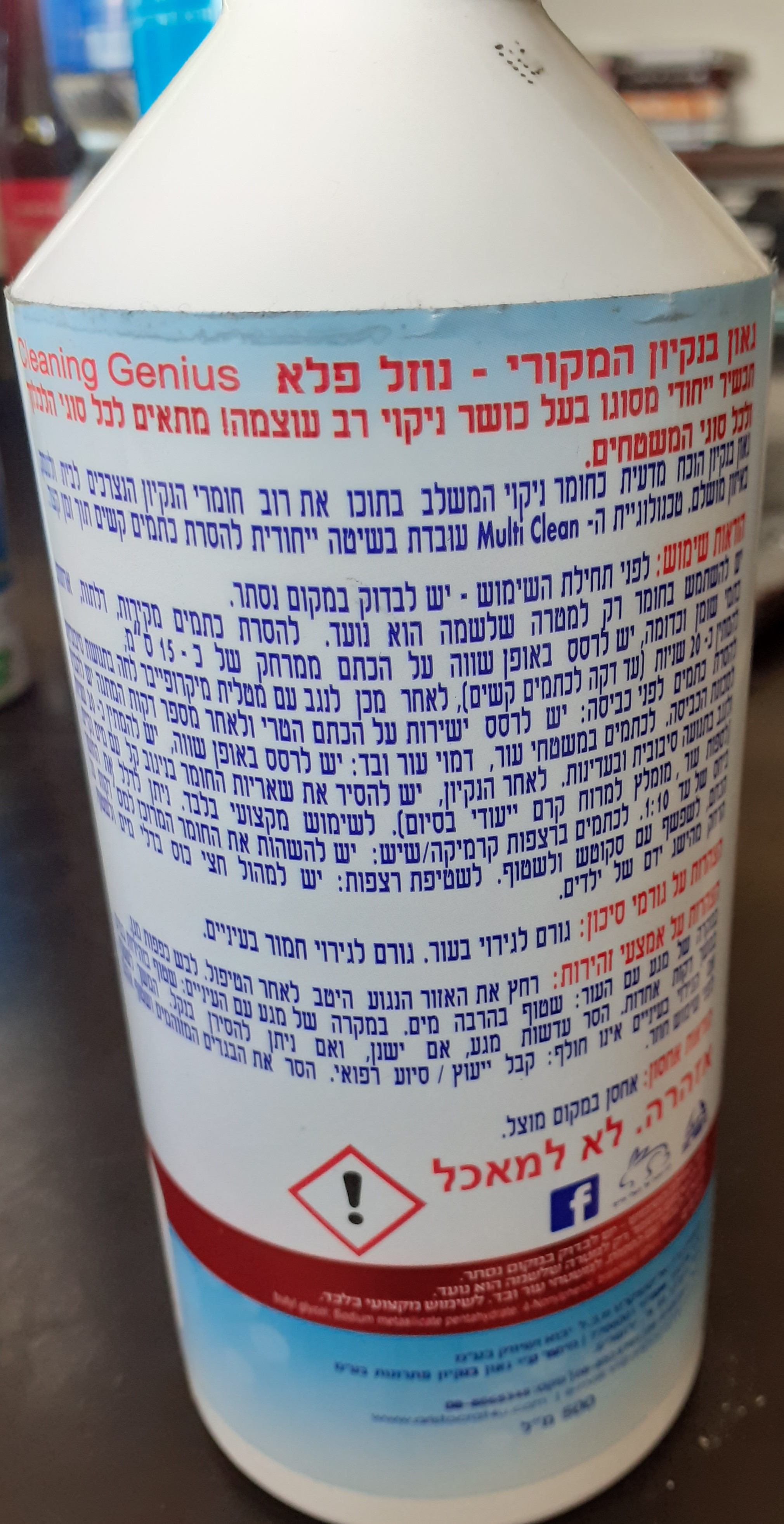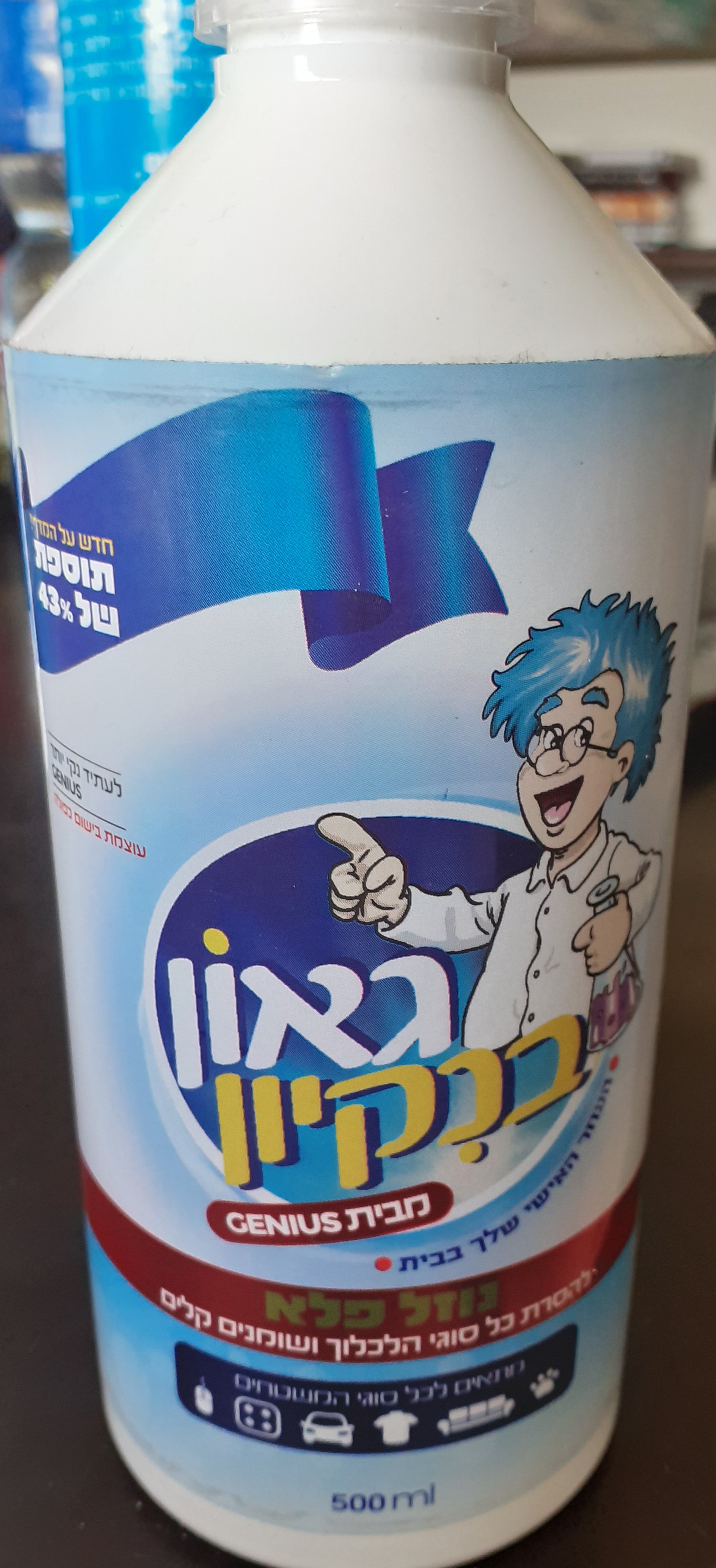 היכן על הבקבוק כתוב איזה חומר זה ?יש לגאון בניקיון 2 סוגים .