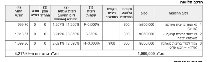 כאשר כל הלוואה הייתה 9 אחוז . פריים - 6 אחוז +3 אחוז.