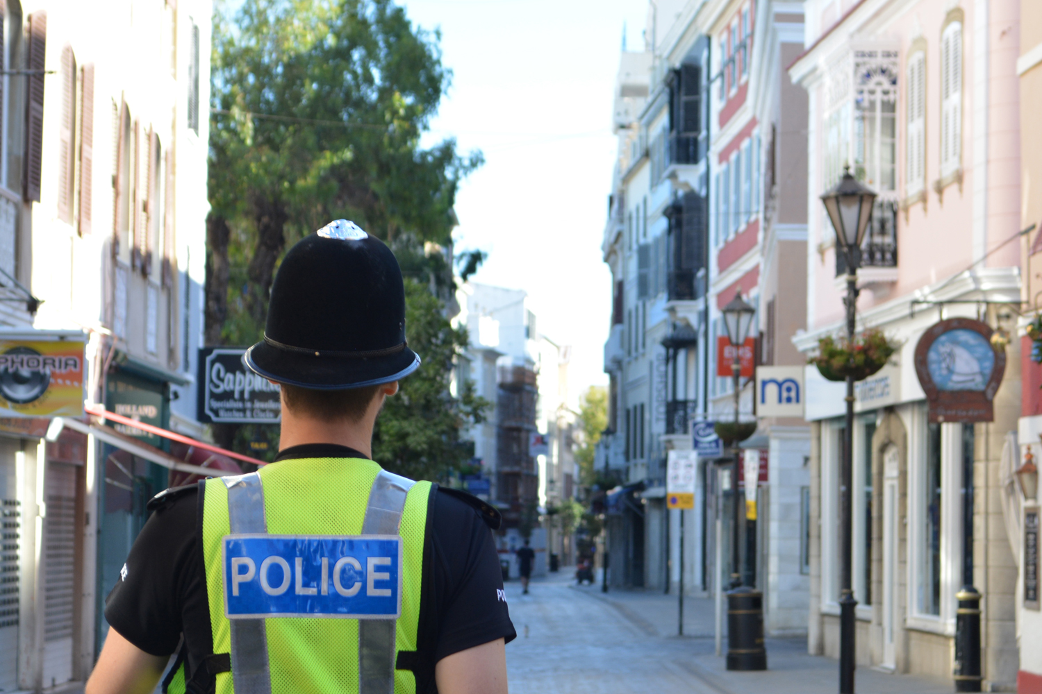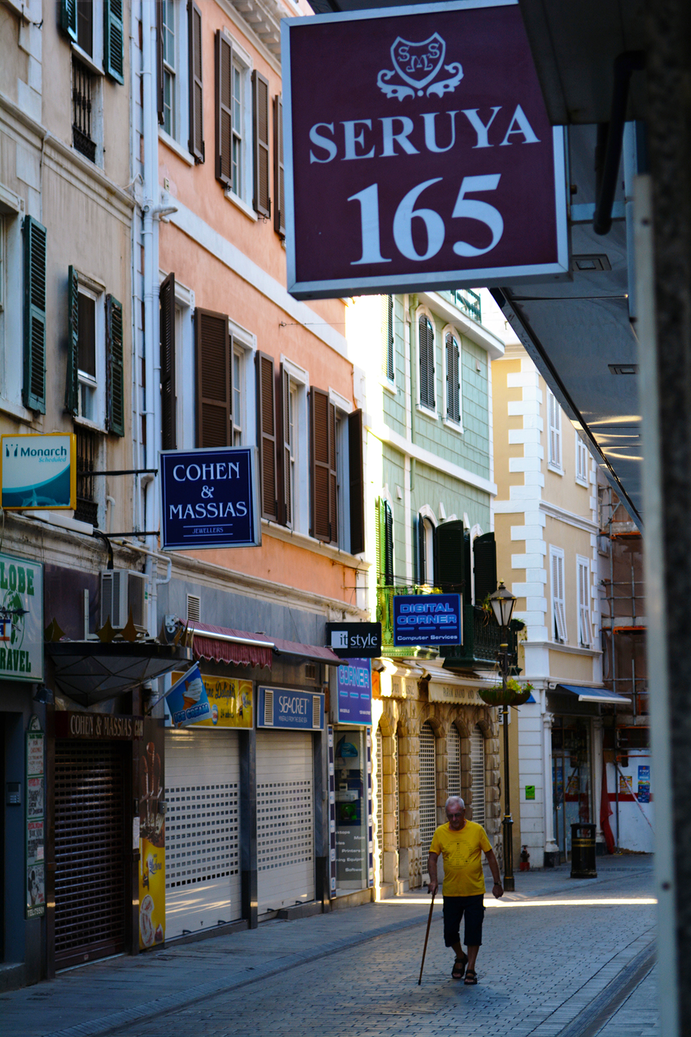 רואים את השלט הגדול בחלק העליון של התמונה? ואת הכחול מאחוריו? אלה חנויות לבשמים ותכשיטים ששיכות לאדונים סרויה, כהן ומסיאס. לכל אחת מהן לפחות 5 סניפים לאורך הרחוב הראשי של גיברלטר, ולפי השמות קל לנחש שהבעלים הם משלנו