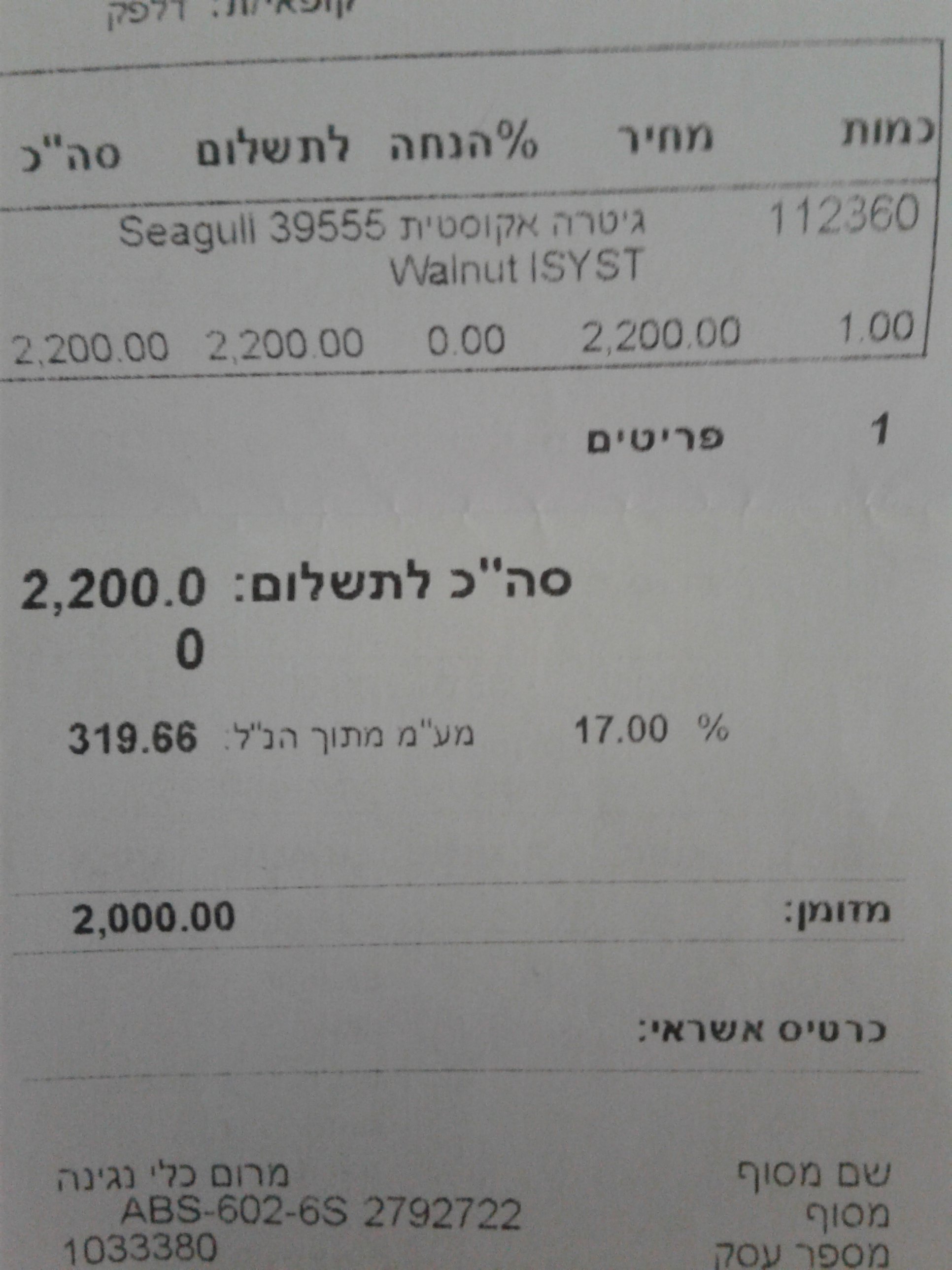 אקוסטית מדהימה של סיגל seagull, צליל מדהים וסאונד עשיר במיוחד! עצים משובחים בעבודת יד! (ברמה של גיטרות יקרות בהרבה! כך מהתרשמות של מקצוענים!) כחדשה ממש, היתה בשימוש מועט מאוד (כמעט ולא!).