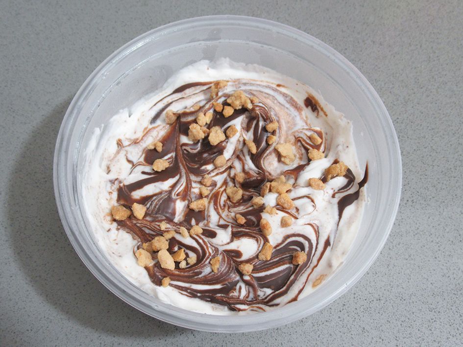 כאן רואים טוב יותר את הגלידה. קופסה קטנה שהכנתי לשכנה שהשאילה לי בשמחה את הסיר החלבי שלה