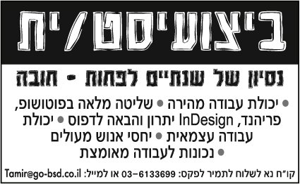 כללי גל אורן BSD מחפשים ביצועיסט / ית - שנתיים נסיון חובה!