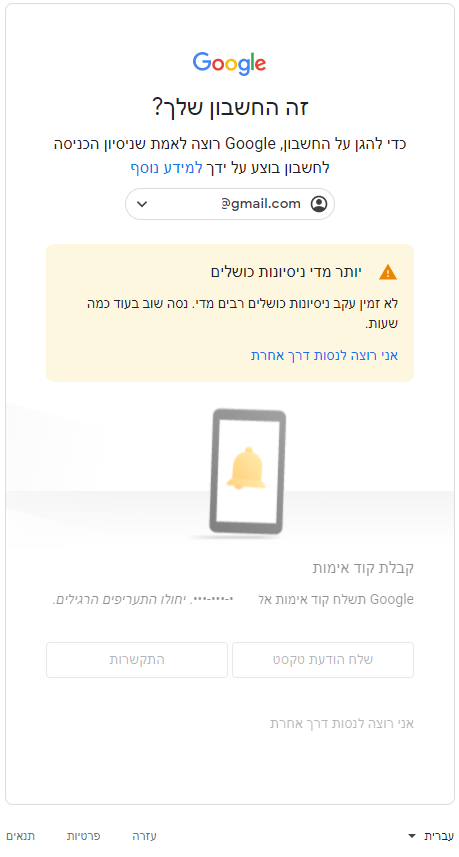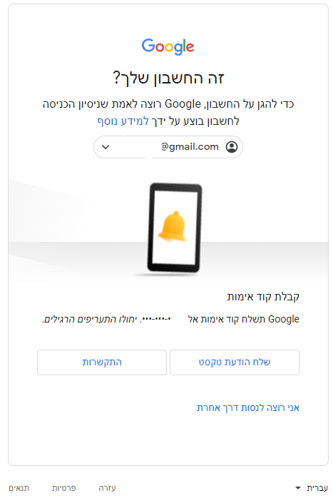 כמובן שיש מקרים בהם גוגל עדיין יבקש אימות דו שלבי, אגב כשתצליח להיכנס תגדיר גם מייל לאימות, יקל מעליך את הכניסה בהמשך