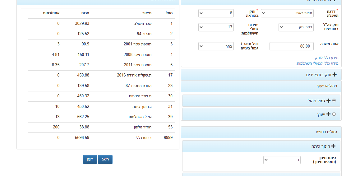 2. להוסיף גמולים ולראות אם זה משנה משמעותית את המשכורת.