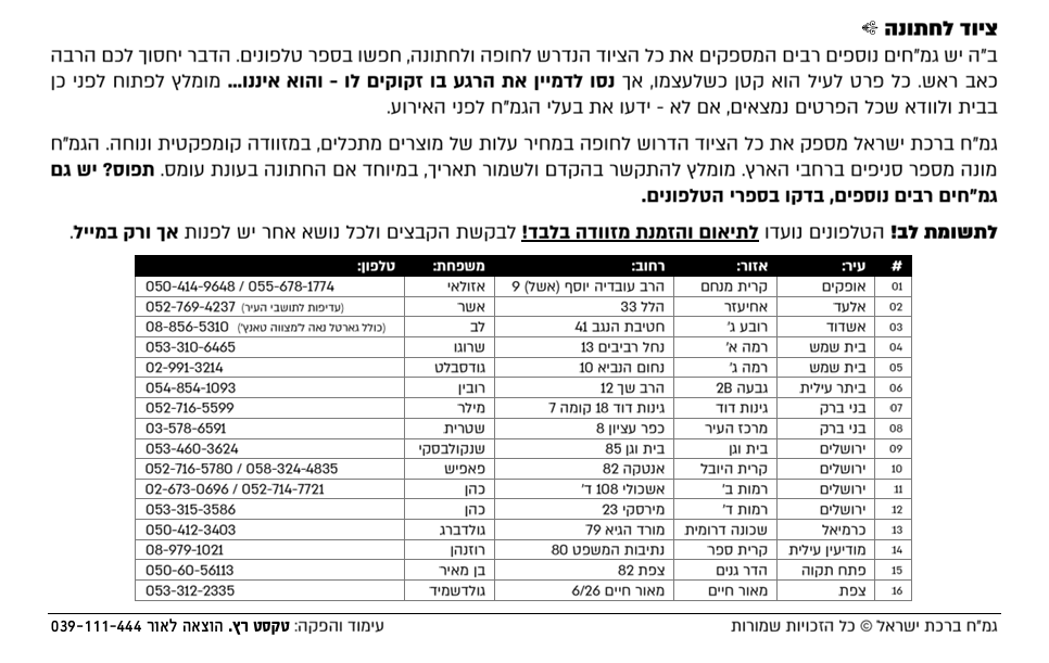 מצ"ב צילום מסך מחוברת כל כלה מבית טקסט רץ גמ"ח ברכת ישראל,