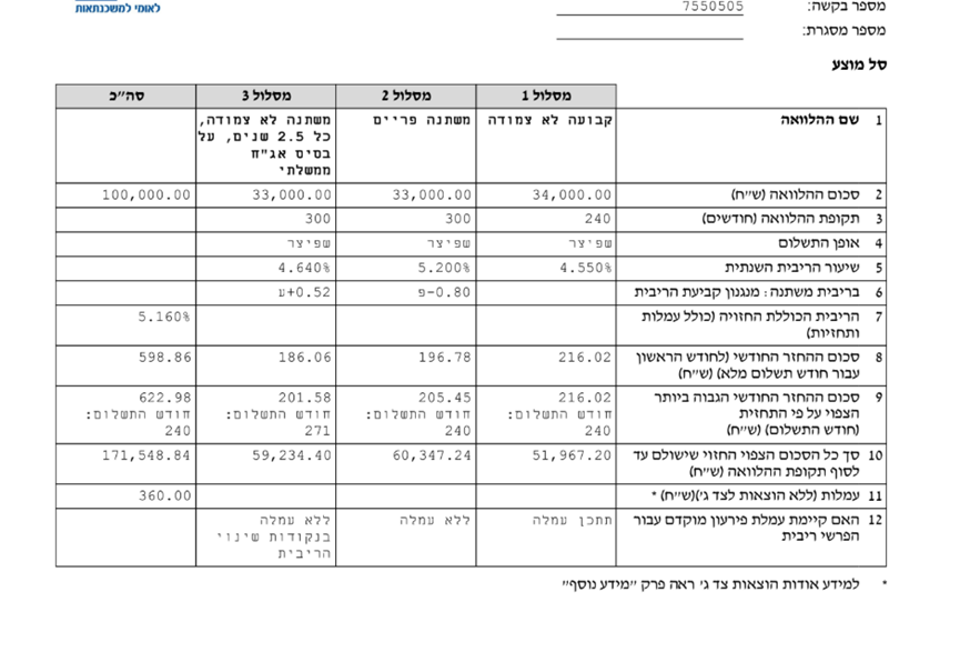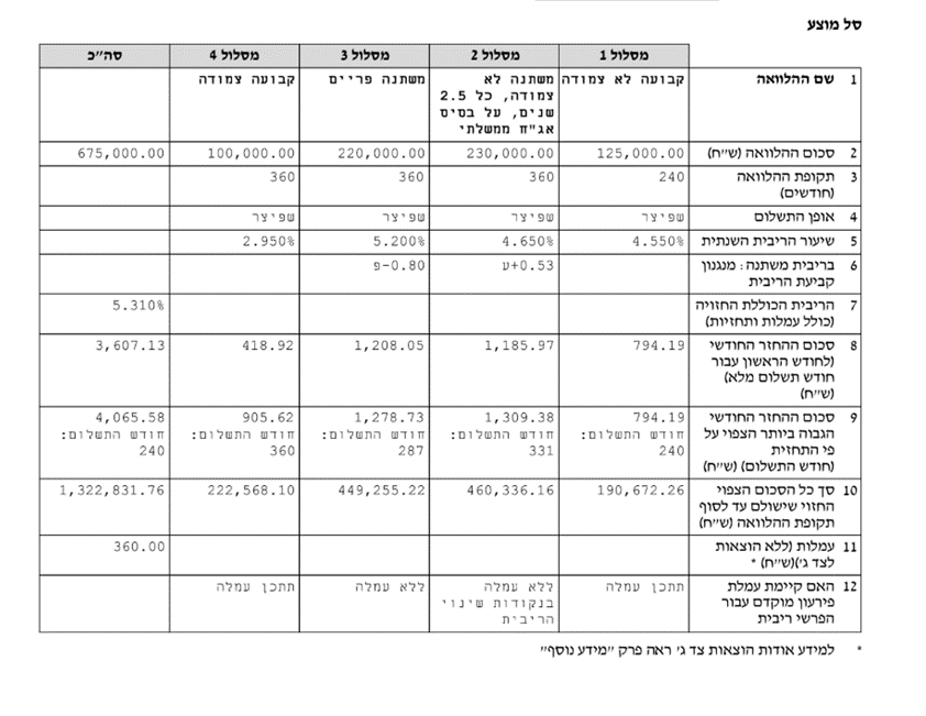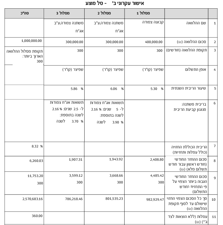 • 300,000 ש"ח - משתנה צמודה על בסיס אג"ח: 5.86%