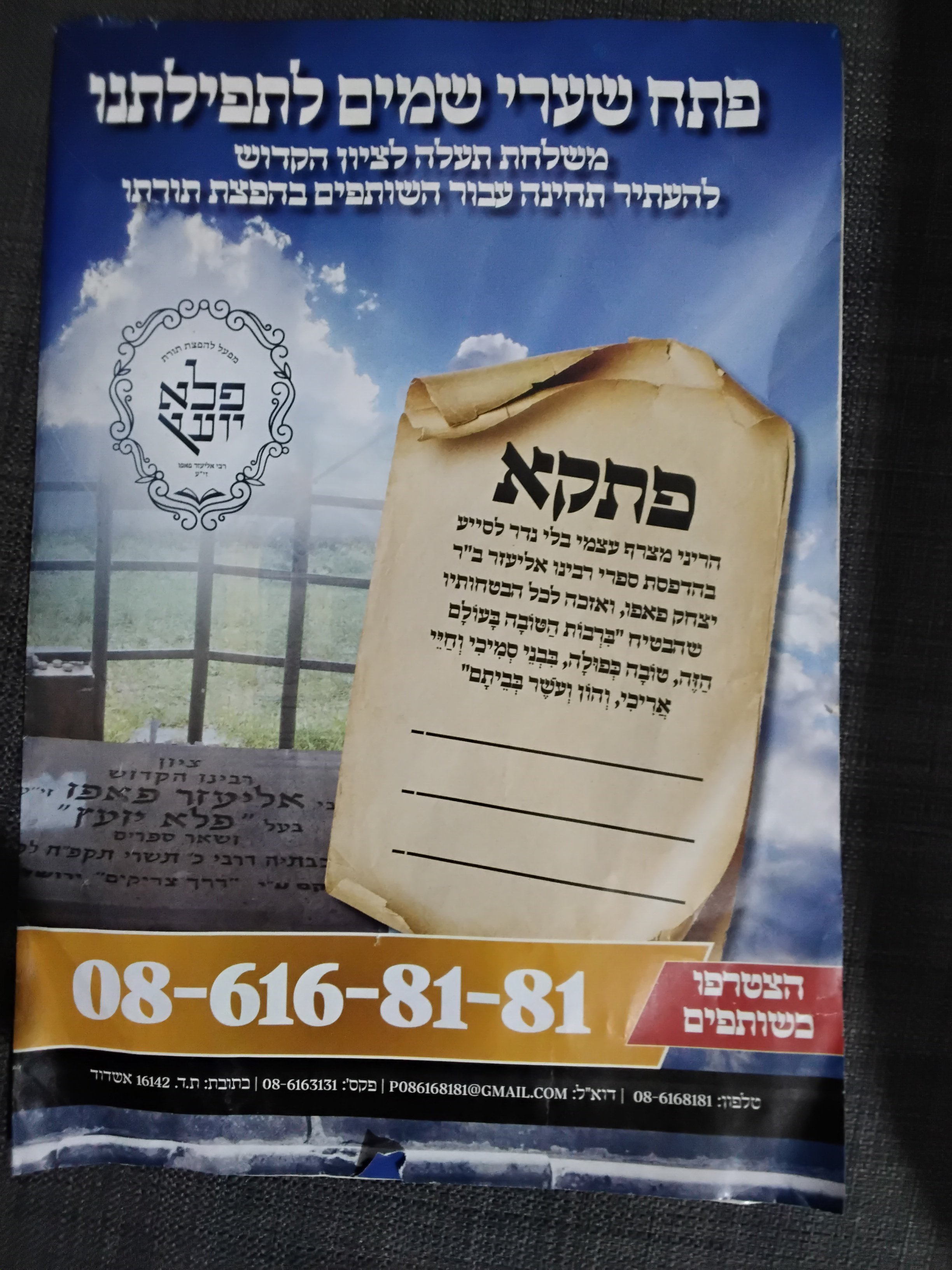 מידע שימושי גניזה בעלון שחולק של 'פלא יועץ'