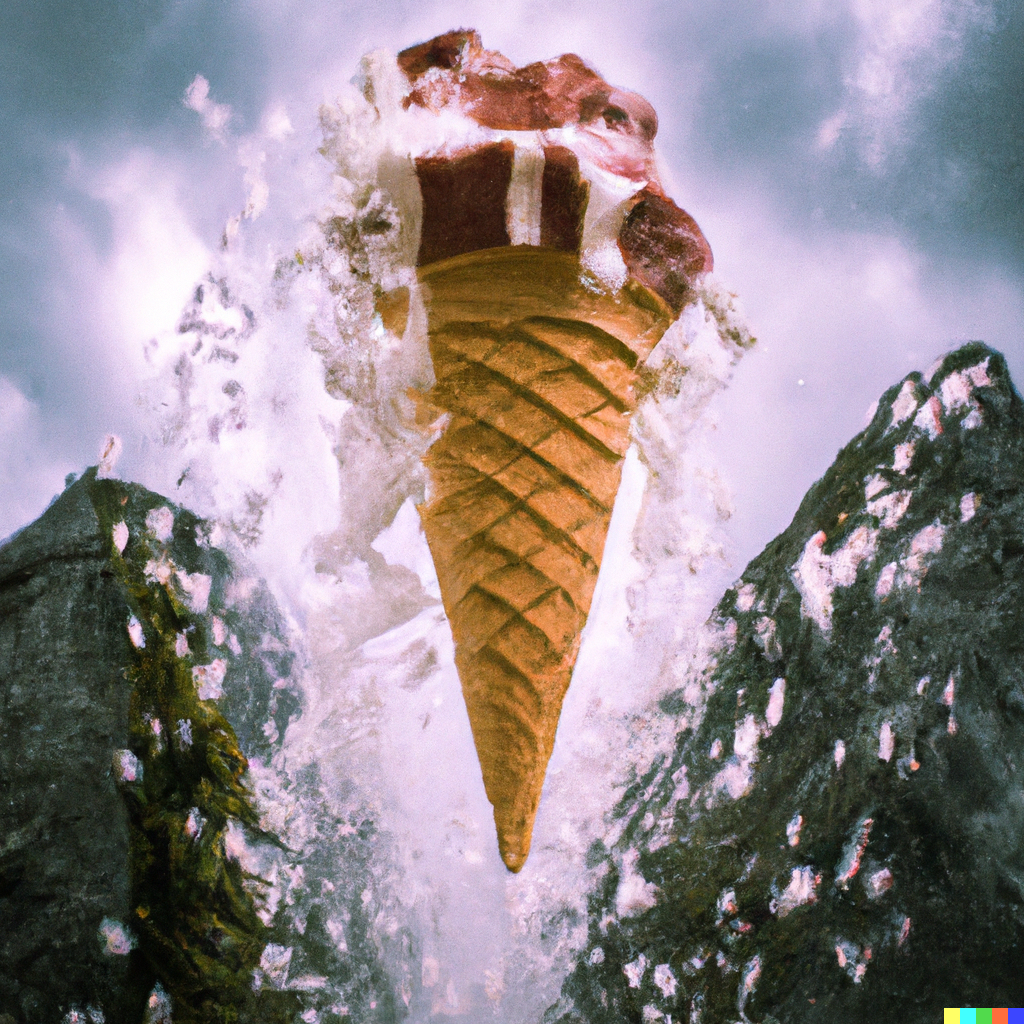 DALL·E 2023-02-01 23.33.23 - A mountain and a waterfall inside an ice cream cone with water in...png