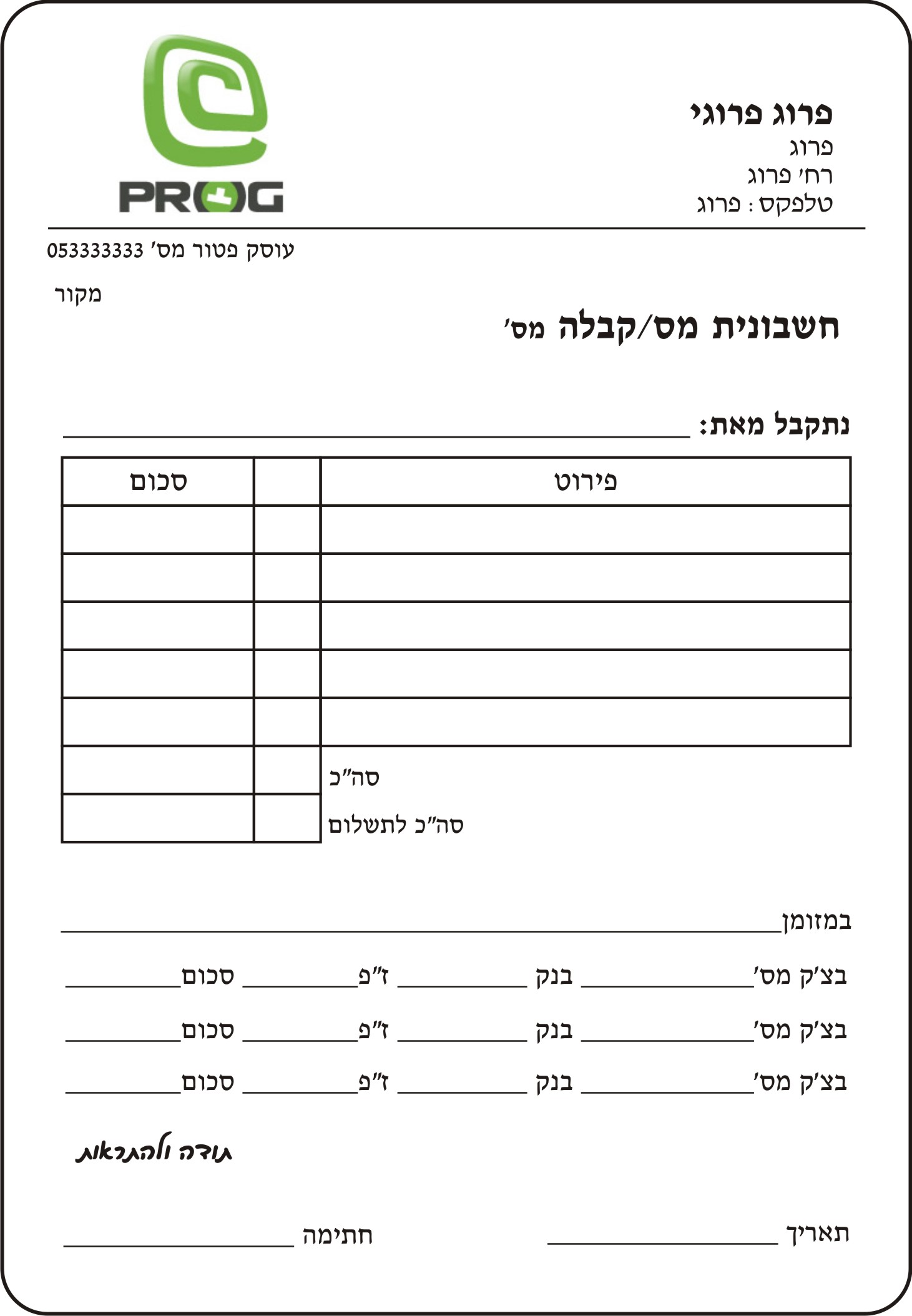 אודה מאוד למי שיוכל להעלות או לשלוח לי דוגמא לקבלה כזאת.
