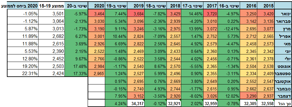 בשיא חודשי הקורונה, יש עליה של 17% ביחס לשנה הקודמת.