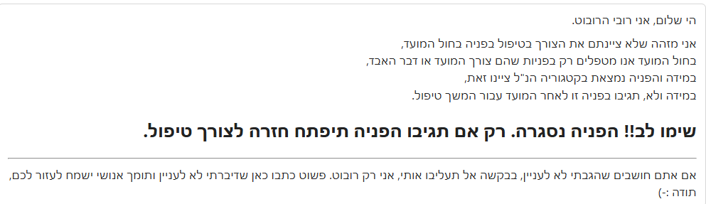 זכור לי שיש להם משהו שבחול המועד הם פותחים דברים שהם רק בדחיפות ממש