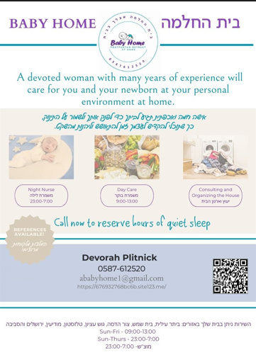 "בית החלמה - בייבי הום" - בית החלמה לכל דבר וענין רק- בלי לצאת מהבית וכן קצת גמישים לגיל התינוק + אופציה ועזרה בניהול הבית (כביסות וארגון..) http://676932768bc6b.site123.me