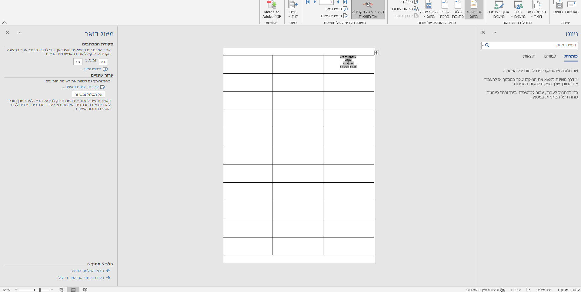 אופיס 365 דחוף במיזוג דואר בוורד מופיע רק שם אחד