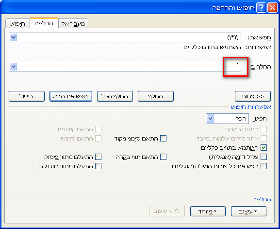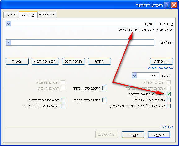תקליד בתיבה 'חפש' את צירוף הסימנים הבא \(*\) - הסימן \ נמצא מימין הפסיק.