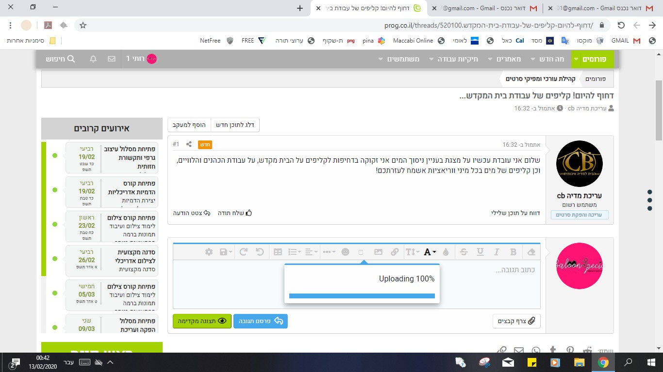 מאז שדרוג האתר, אני מעלה וכותב 100% העלאה
