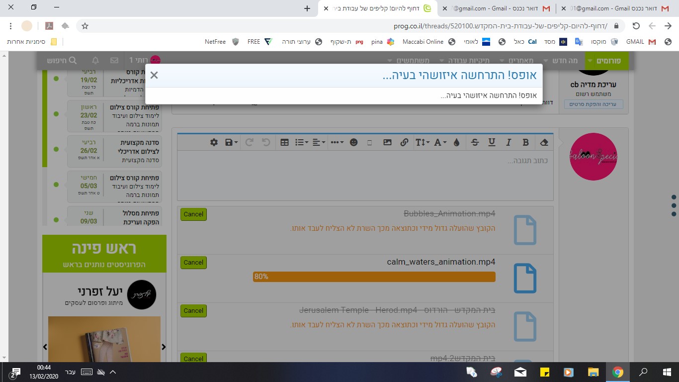 אני לא מצליחה להעלות קטעי וידיאו!!!!!!!!!!!